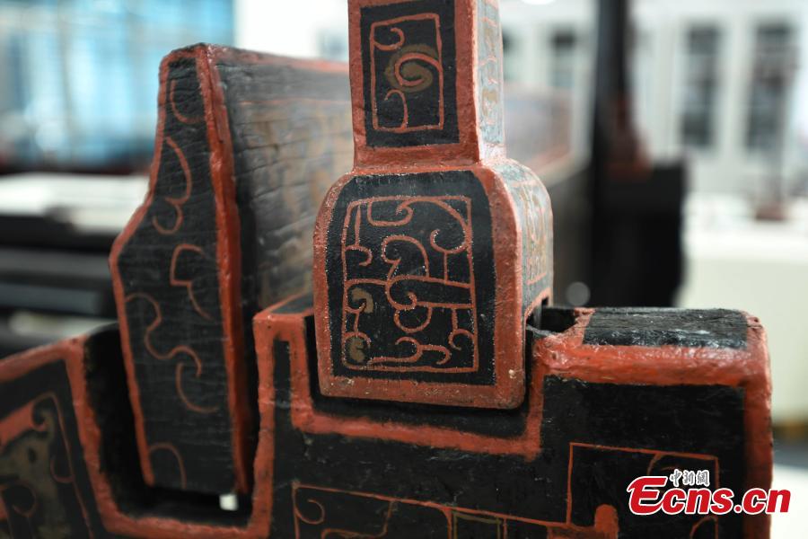 Components of a lacquer wood bed from 2,500 years ago at the Chengdu Cultural Relics and Archeology Research Institute in Chengdu city, the capital of Southwest China’s Sichuan province, Jan 8, 2017. [Photo/China News Service]