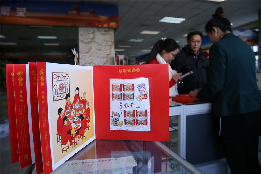 Collectors purchase newly issued "New Year Greetings" stamps in a post office in Beijing, Jan 10, 2018. [Photo by Chen Xiaogen/Asianewsphoto]