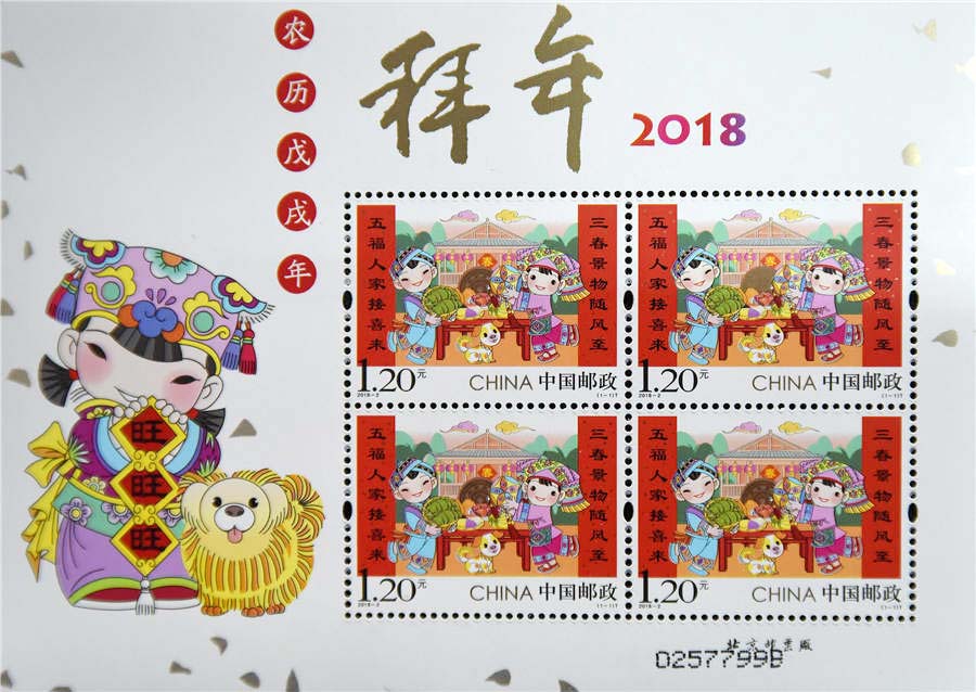 The newly issued set of "New Year Greetings" stamps. [Photo by Hao Qunying/Asianewsphoto]