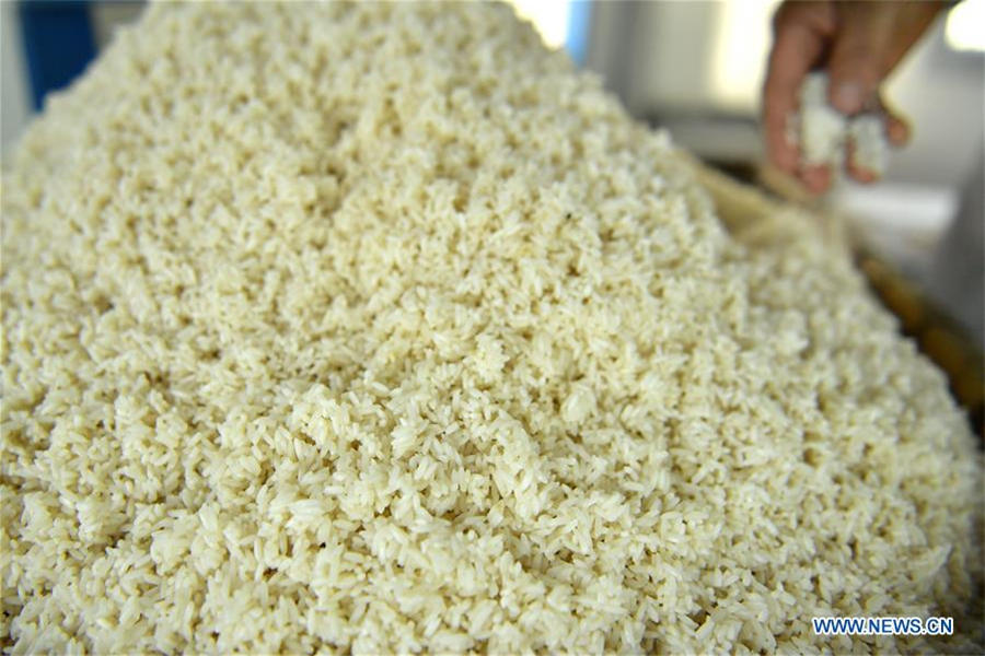 A cook prepares glutinous rice to make ciba for the Spring Festival in Banchang village of Xuan'en county, Enshi Tujia and Miao autonomous prefecture, Central China's Hubei province, Jan 11, 2018. [Photo/Xinhua]