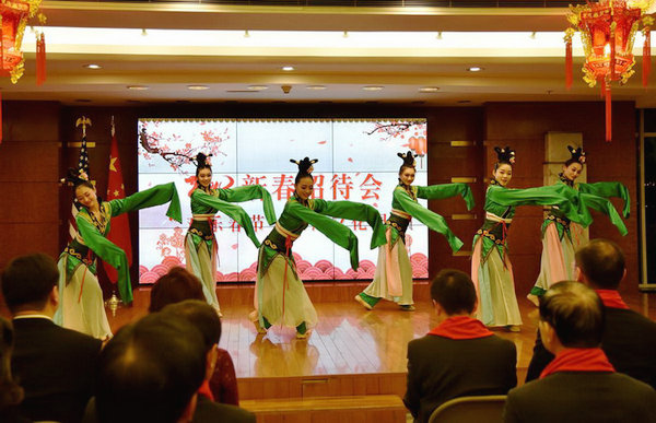 College students from Shanghai perform at the opening ceremony of Happy Chinese New Year – Shanghai Week at the Consulate General of China in New York, Jan 9, 2018. [Photo/Chinaculture.org] |