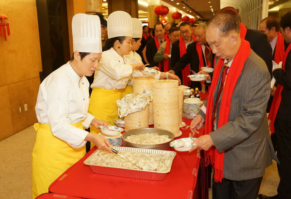 Pastry chefs from Qibao Old Street in Shanghai serve guests Shanghai delicacies during the opening ceremony of Happy Chinese New Year – Shanghai Week at the Consulate General of China in New York, Jan 9, 2018. [Photo/Chinaculture.org]