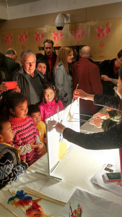 Puppeteers perform shadow plays for visitors during the Chinese Zodiac Creativity Exhibition at the China Culture Center in Malta on Jan 12, 2018. [Photo/Chinaculture.org]