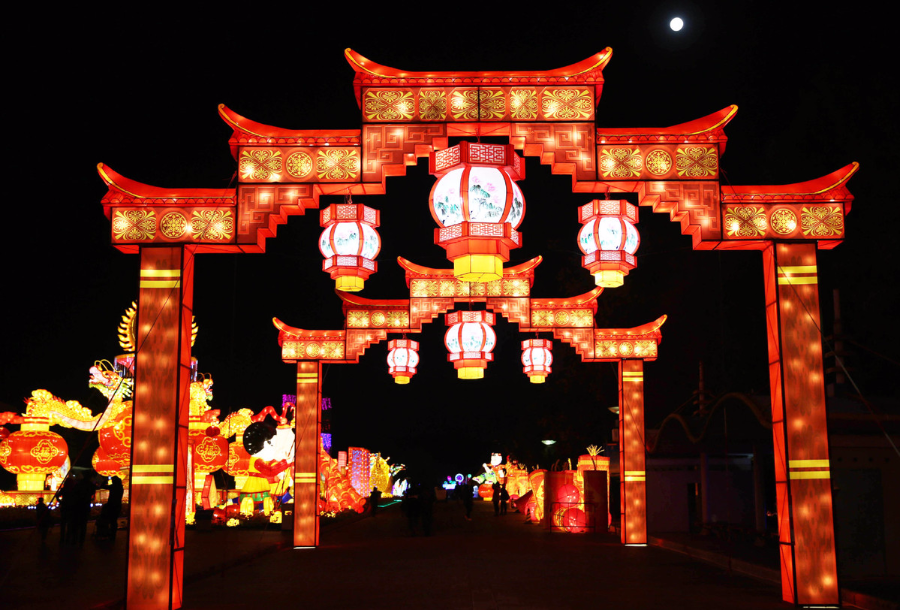 Tourists watch a light show at World Horticultural Expo Garden in Kunming, capital of Southwest China's Yunnan province, Jan 30, 2018. The Expo set up the light show to greet the upcoming Spring Festival, which falls on Feb 16 this year.[Photo/Xinhua]
