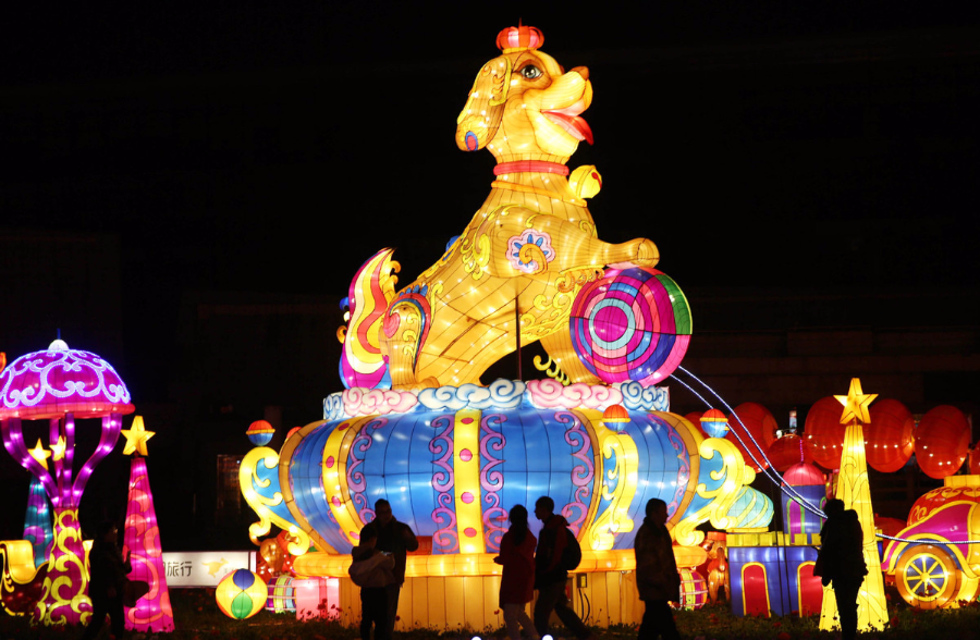 Tourists watch a light show at World Horticultural Expo Garden in Kunming, capital of Southwest China's Yunnan province, Jan 30, 2018. The Expo set up the light show to greet the upcoming Spring Festival, which falls on Feb 16 this year.[Photo/Xinhua]