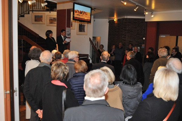 Shen Zhongwen, deputy head of the China Cultural Center in Paris, speaks at the opening of Photo Exhibition of Ancient Silk Road in Garches, France on Jan 30, 2018. [Photo/Chinaculture.org]