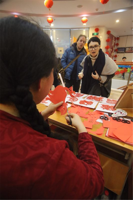 Chinese and foreign media and the families not only enjoyed the traditional Chinese culture, but also made dumplings, visited a temple, watched sugar-figure blowing art performances and took part in paper-cutting activities.
