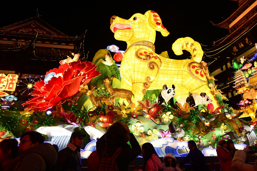 A lantern fair lightens up at Yuyuan Garden in Shanghai with more than 30 lighting projects. [Photo/Xinhua]