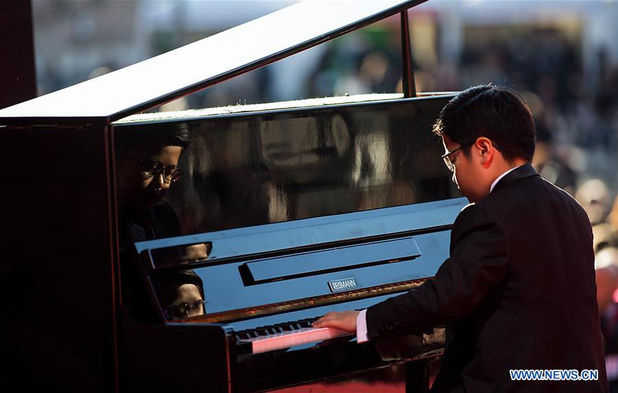 A young performer plays the piano to celebrate the upcoming Chinese Lunar New Year in Piazza del Popolo of Rome, Italy, Feb 10, 2018. [Photo/Xinhua]