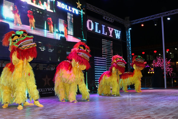 The traditional lion dance is performed at the temple fair in Sharm EI Sheikh, Egypt on Feb 9. [Photo by Gan Hongwei]