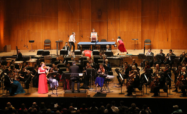 The concerto is related to Chinese culture and history, and the soloists were two champion ping-pong players, together with other soloists with the Philharmonic, said Young.