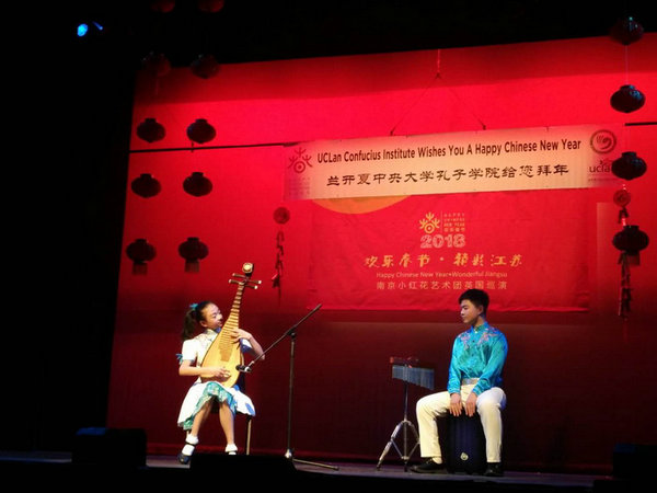 The young artists performed a series of dances and traditional Yi people's music. Chinese calligraphy and painting were also featured during the dances.