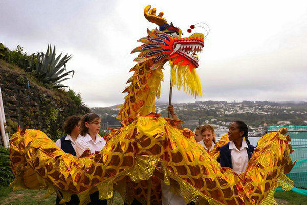 Students of the Wellington East Girls' School learn dragon dance techniques in a Confucius Class in Wellington on Feb 16, 2018. [Photo/Chinaculture.org] |