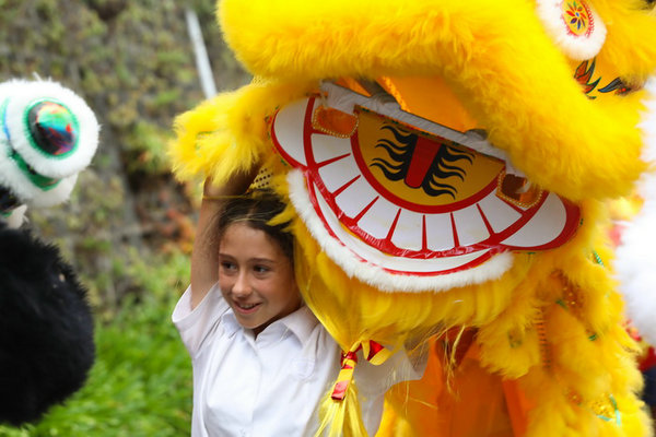 A student from the Wellington East Girls' School learning dragon dance techniques poses for a photo in a Confucius Class. [Photo/Chinaculture.org]