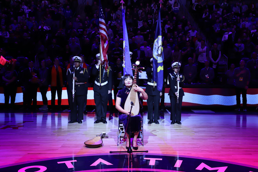 Hong Lei, Chinese consul general in Chicago; Ethan Casson, CEO of the Timberwolves and many other Chinese and US officials attended the event, together with nearly 20,000 spectators. Before the game, Hong and Casson exchanged gifts on the court to extend New Year greetings to each other.