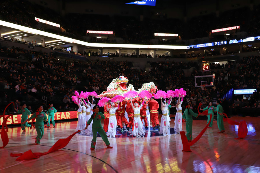 Artists from the CAAM Chinese Dance Theater stage a performance titled Dragons Flying and Phoenixes Dancing at Target Center in Minnesota on Feb 13, 2018. [Photo/Chinaculture.org]