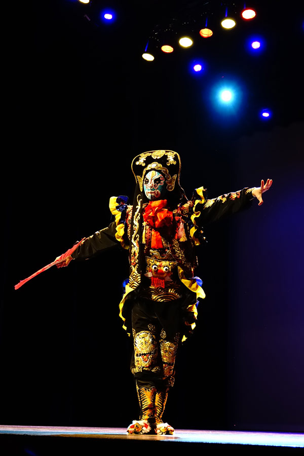 A Chinese artist performs Sichuan Opera face-changing at the Happy Chinese New Year: Impression of China evening gala in Purmerend, the Netherlands, Feb 19, 2018. [Photo/Chinaculture.org]