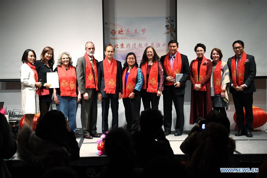 People pose for a photo during the opening ceremony of Happy Chinese Festival in Schools of Bay Area in San Jose Museum of Art, Silicon Valley, the United States, on Feb 23, 2018. [Photo/Xinhua]