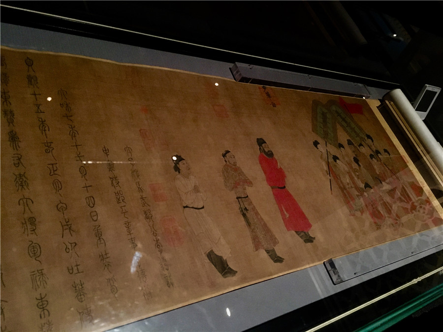 The 1.3-meter-long scroll painting, also known as Emperor Taizong Receiving the Tibetan Envoy, is generally believed to be painted by Tang Dynasty (618-907) artist Yan Liben, but it is also speculated to be a facsimile from Northern Song Dynasty (960-1127) of Yan’s original work.