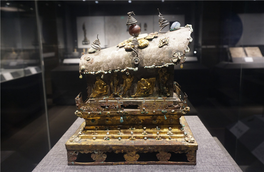 A Tang Dynasty silver coffin is displayed at the Zhejiang Provincial Museum in Hangzhou, Feb 27, 2017. [Photo by Long Wei/Asianewsphoto]
