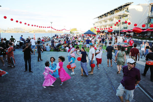 People celebrate the Chinese New Year at the third "Light Up Newcastle" at Harbor Square in Newcastle, Australia, Feb 24, 2018. [Photo/Chinaculture.org]