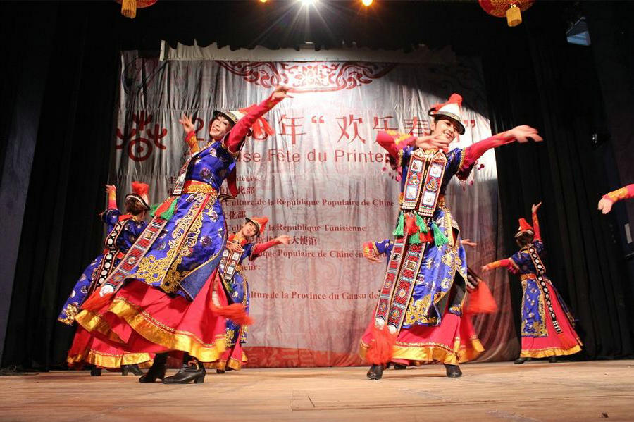 Tunisia: Dancers stage a performance featuring the costumes of the Yugur people at the 2018 Happy Chinese New Year gala in Tunisia. [Photo/Chinaculture.org.]
