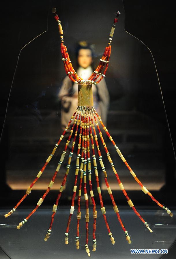 Photo taken on March 7, 2018 shows jade pendants displayed at the newly-opened relics museum of Rui State at Liangdai Village in Hancheng city, Northwest China's Shaanxi province. The museum is built upon the tomb complex of Rui state during ancient China's Zhou Dynasty (1046 BC - 256 BC). A total of 1,300 tombs and 64 chariot pits were detected, more than 26,000 historical and cultural relics were unearthed here. [Photo/Xinhua]