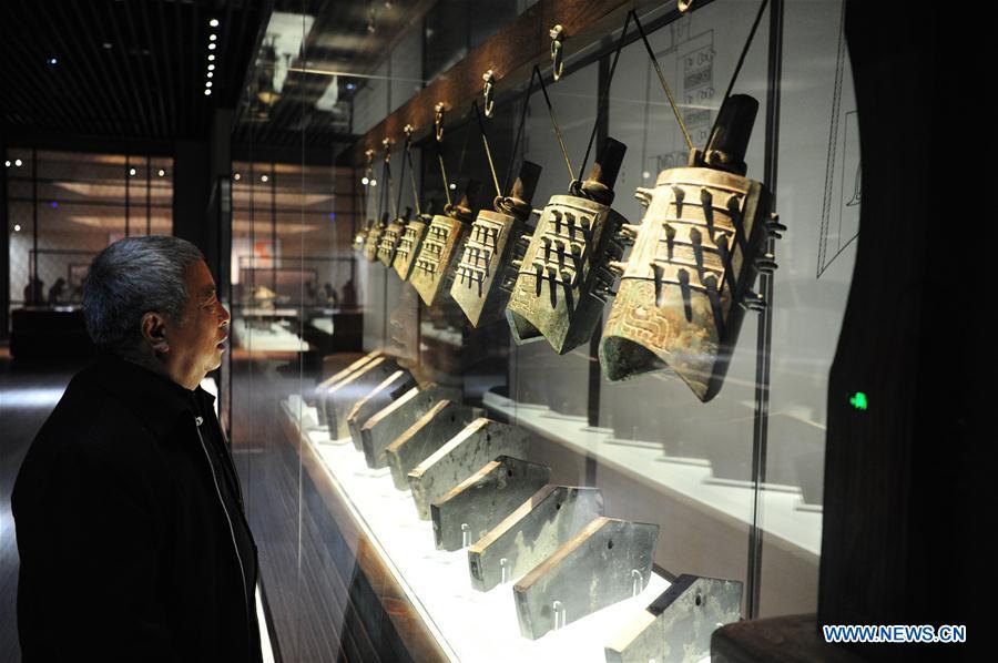 Visitors view the exhibits at the newly-opened relics museum of Rui State at Liangdai Village in Hancheng city, Northwest China's Shaanxi province, March 7, 2018. The museum is built upon the tomb complex of Rui state during ancient China's Zhou Dynasty (1046 BC - 256 BC). A total of 1,300 tombs and 64 chariot pits were detected, more than 26,000 historical and cultural relics were unearthed here. [Photo/Xinhua]