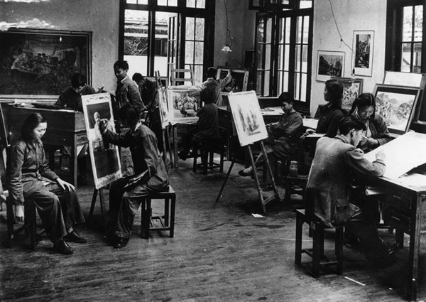 A classroom featuring students of the China Academy of Art in 1955. [Photo/China Daily]