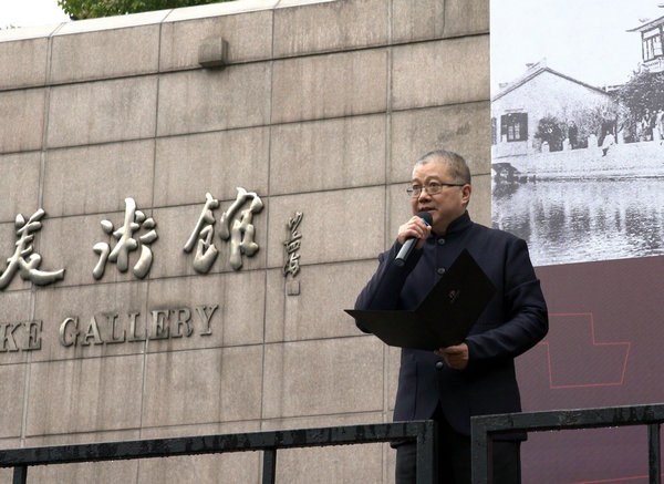 Xu Jiang, director of the China Academy of Art, speaks at the ceremony on Friday to mark the 90th anniversary of the academy's founding. [Photo/China Daily]