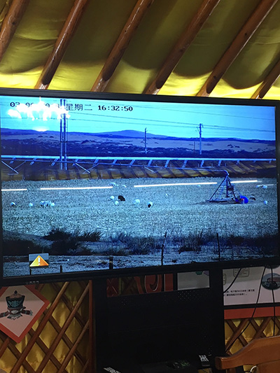 A TV screen shows the movement of sheep in Tabantaolegai village, Otog Front Banner, Inner Mongolia autonomous region.[Photo by Satarupa Bhattacharjya/Lin Hong/China Daily] |