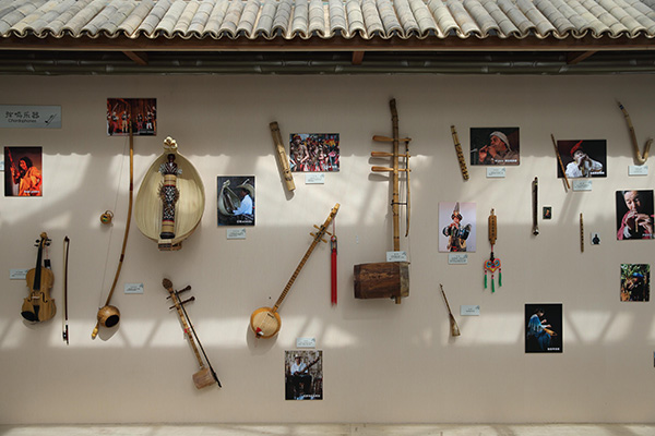 More than 100 bamboo musical instruments are on display in an exhibition curated by Wang Wei in Beijing.[Photo by Wang Jing/China Daily] |