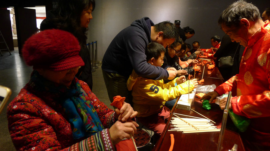 The composition "Our Holiday" made up of thousands of large dough models in festive clothing and poses, appears in the Kunming City Museum for the first time. It took eight folk artists one year to build the variety of characters and scenes for the entire work, which is up to 18 meters long. [Photo/Kunming City Museum]