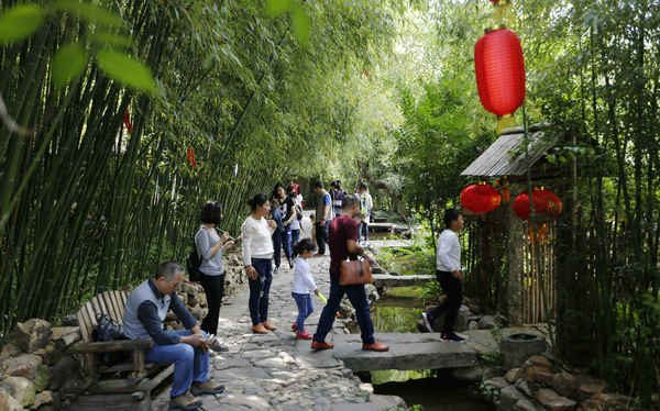 Visitors experience rural life in Zhuquan village in Linyi, Shandong province. [Photo by Wang Yanbing/provided to China Daily]