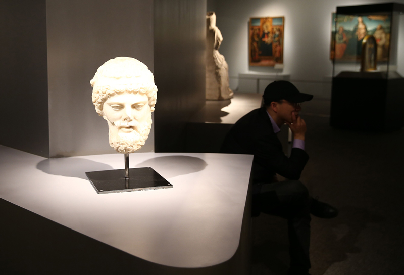 An Italian sculpture of a man’s head is on display at the Capital Museum in Beijing, March 27, 2018. [Photo by Zou Hong/chinadaily.com.cn]