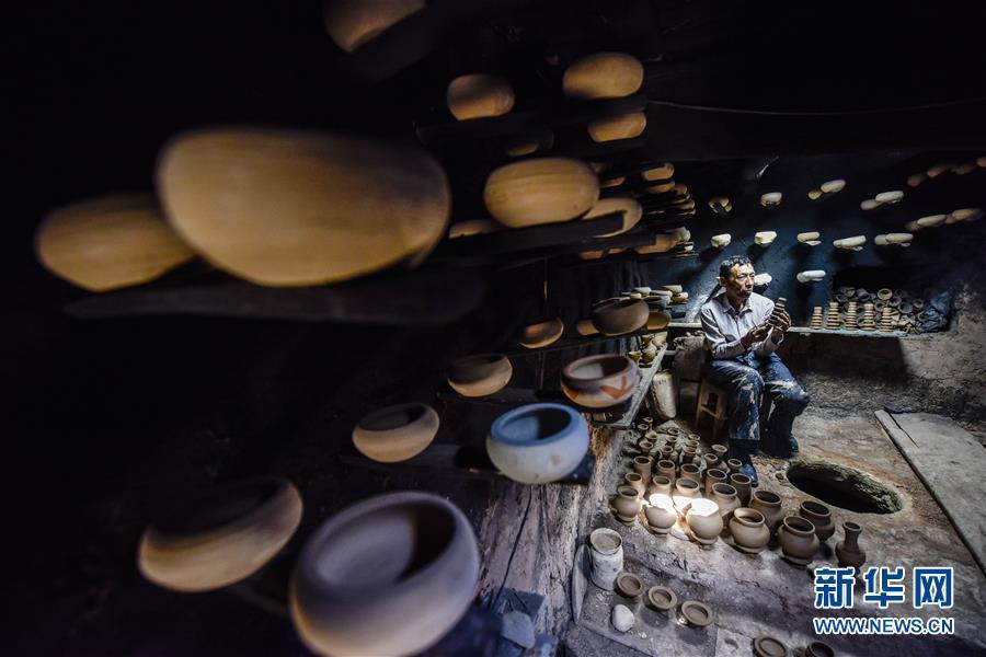 Tursun Zunum makes an earthenware vase at his studio in the old town of Kashgar, Xinjiang Uygur autonomous region, on March 16, 2018. [Photo/Xinhua]