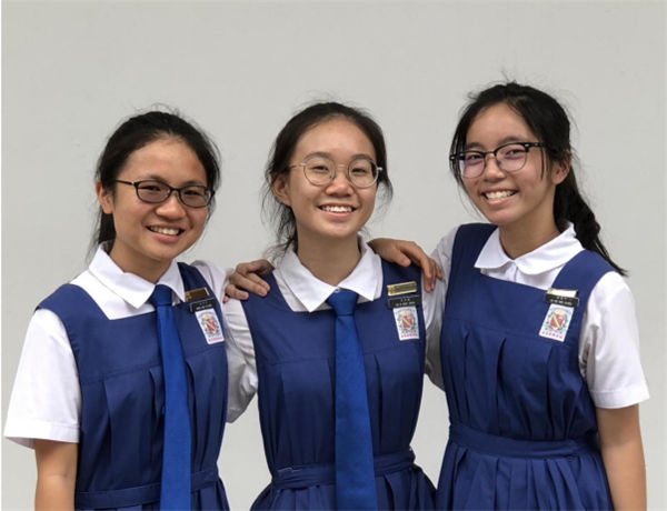 Three student translators from Singapore's CHIJ Saint Nicholas Girls' School. [Photo/cctss.org] |