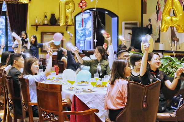 Students from Taiwan, Hong Kong and Macao at a Renmin University of China graduation party. [Photo provided to China Daily] |