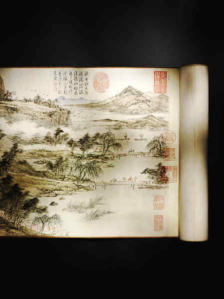 Ten Auspicious Landscapes of Taishan, a scroll painting depicting 10 magnificent views of Tiantai Mountain in Zhejiang province by Qing Dynasty (1644-1911) Emperor Qianlong's court painter Qian Weicheng, will be auctioned on April 3 at Sotheby's in Hong Kong. The scroll also features 10 poems by the emperor about the artist who always accompanied him on official inspection tours of southern China.