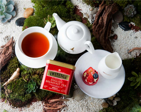A serving of Twinings English Breakfast Tea with a cake. [Photo provided to chinadaily.com.cn] |