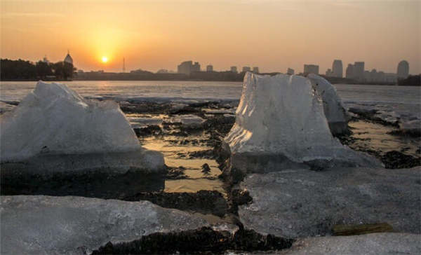 As temperatures rise above freezing in Changchun, capital of Northeast China's Jilin province, ice on Nanhu Lake is beginning to melt. [Photo by Xixingyushe /for chinadaily.com.cn]