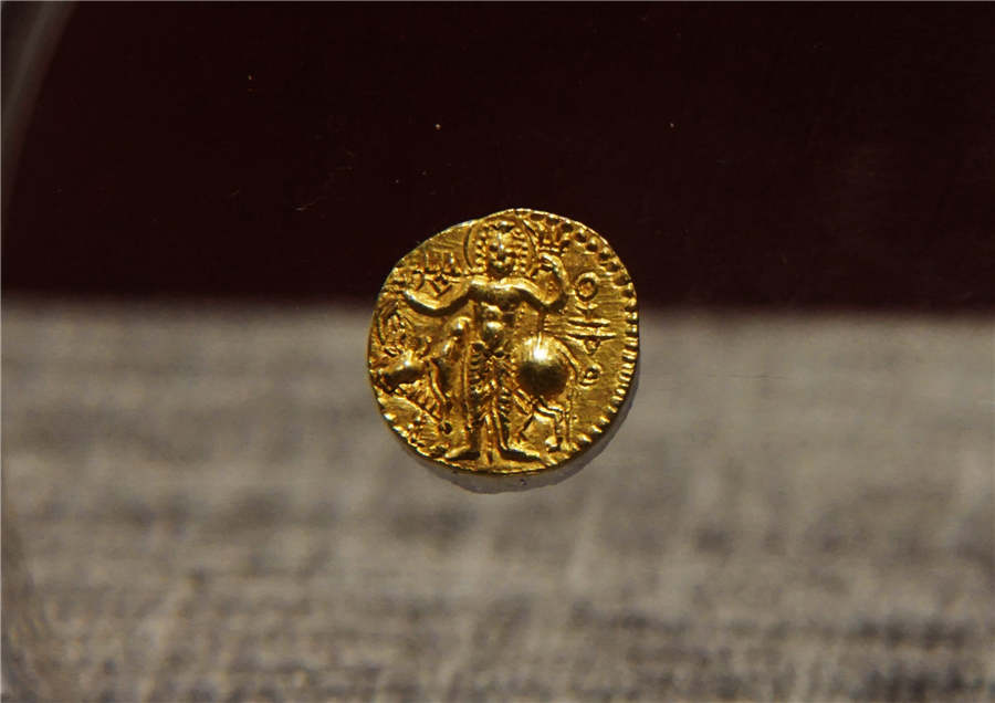 A gold coin from the Kushan Empire, an ancient kingdom in Central Asia. [Photo by Long Wei/Asianewsphoto]