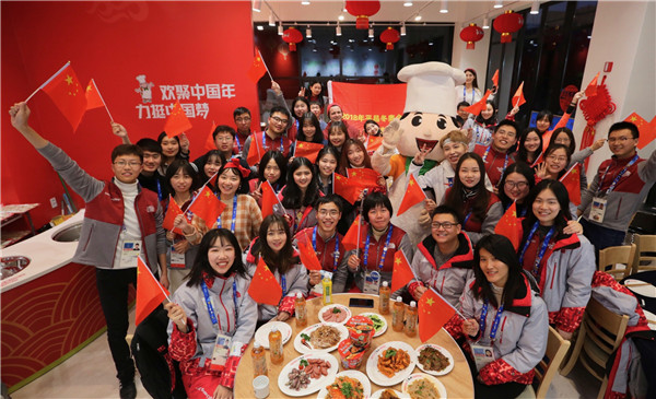 Volunteers for the Pyeongchang Olympics Winter Games celebrate Chinese New Year. [Photo provided to China Daily] |