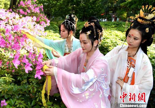 The whole event commenced with a ceremony to honor the flower goddess, when 12 young women clad in iridescent hanfu performed a series of rites, including presenting incense, flowers and wine to the goddess, to pray for good luck.