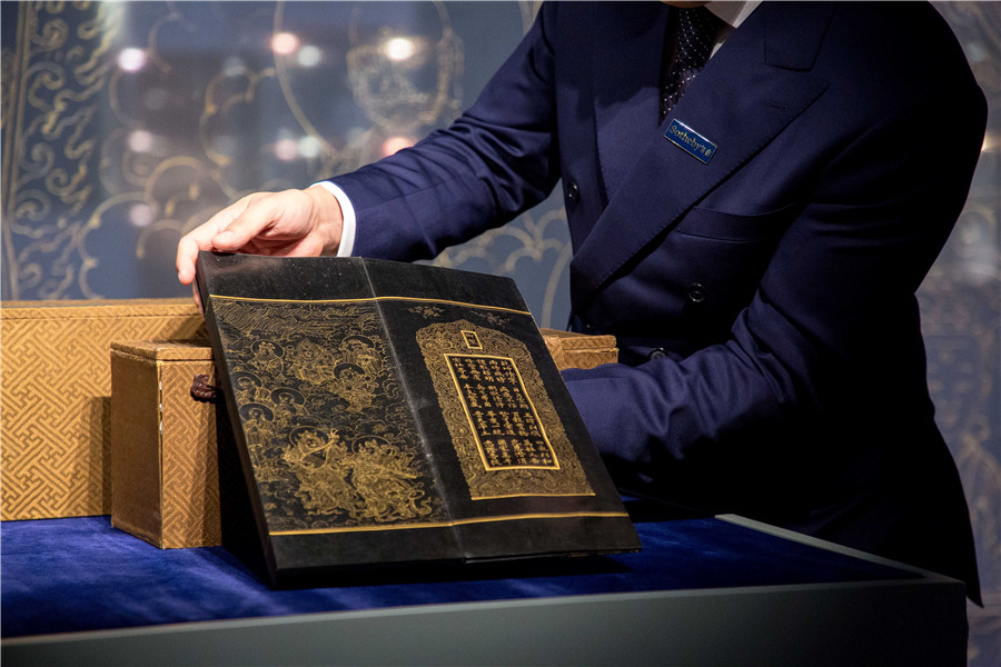 A 15th-century collection of 10 albums of the Prajnaparamita Sutra or Perfection of Transcendent Wisdom and an 18th-century enamel porcelain bowl fetched HK$239 million.