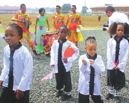 Young students of the Chinese Wushu School in Monrovia prepare for a show piece. [Photo provided to China Daily]