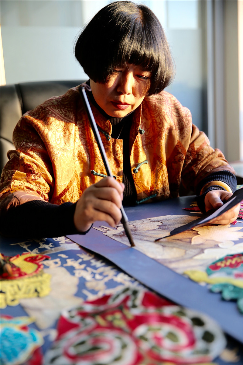 Zhang Lin is creating a work of art with fish skin. [Photo provided to chinadaily.com.cn]