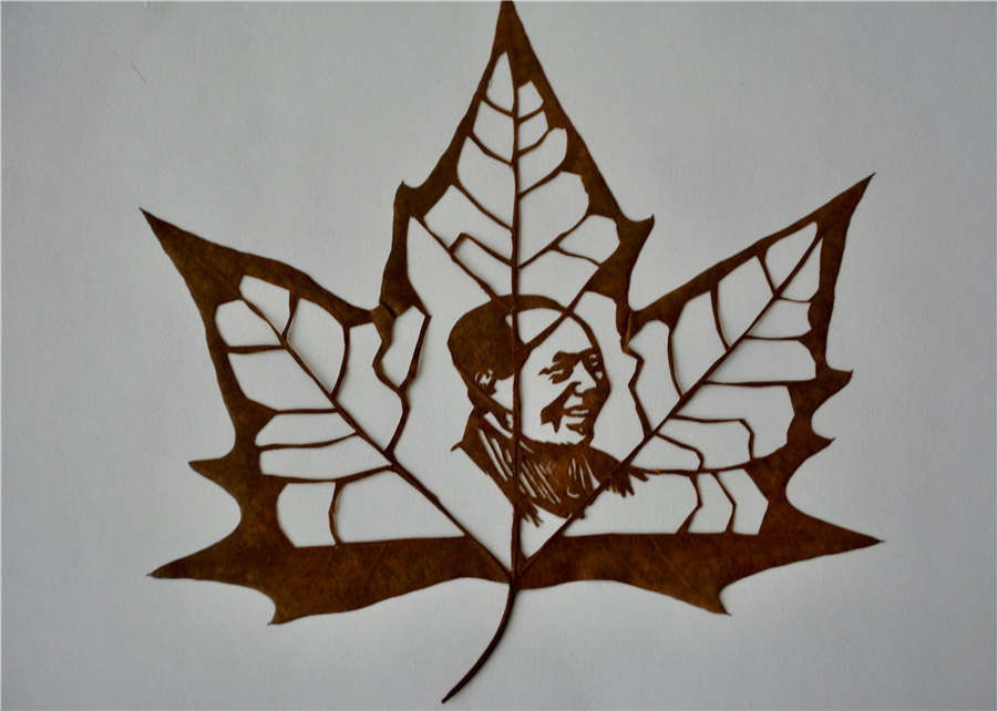 A leaf carving piece by Li Kai.[Photo provided to chinadaily.com.cn]