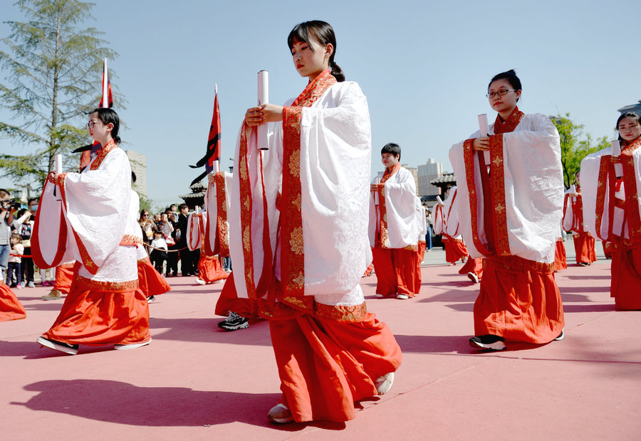 At the ceremony, these hanfu buffs performed a series of rites according to the ancient customs, symbolizing they are to embark on a new journey in life.