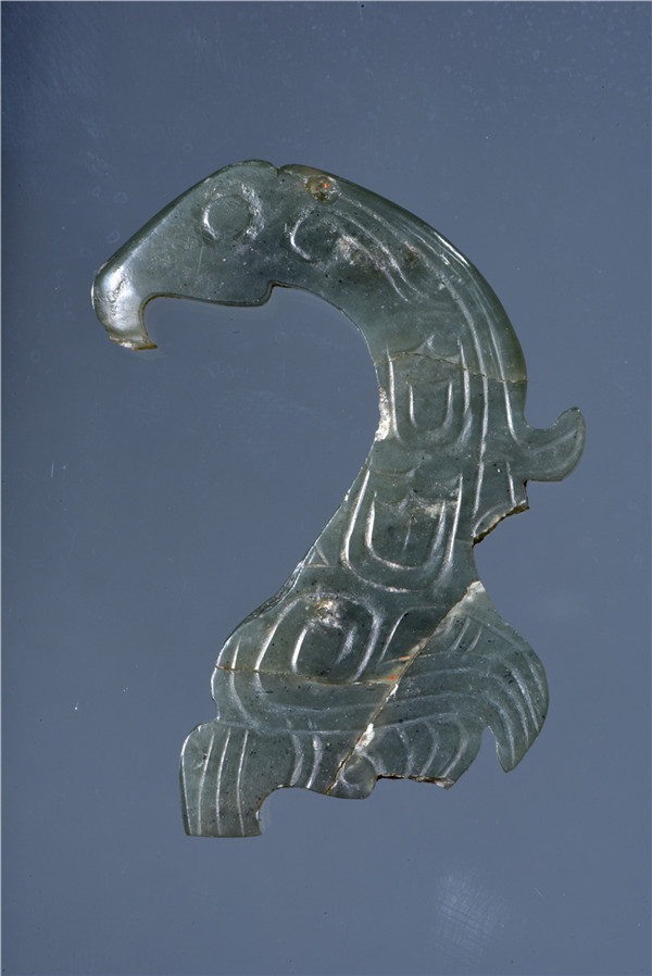 Yaoheyuan relics in Pengyang, Ningxia Hui autonomous region -- Western Zhou Dynasty (c. 11th century-771 BC). The photo shows a jade phoenix ornament found at the Yaoheyuan site. [Photo provided to China Daily]